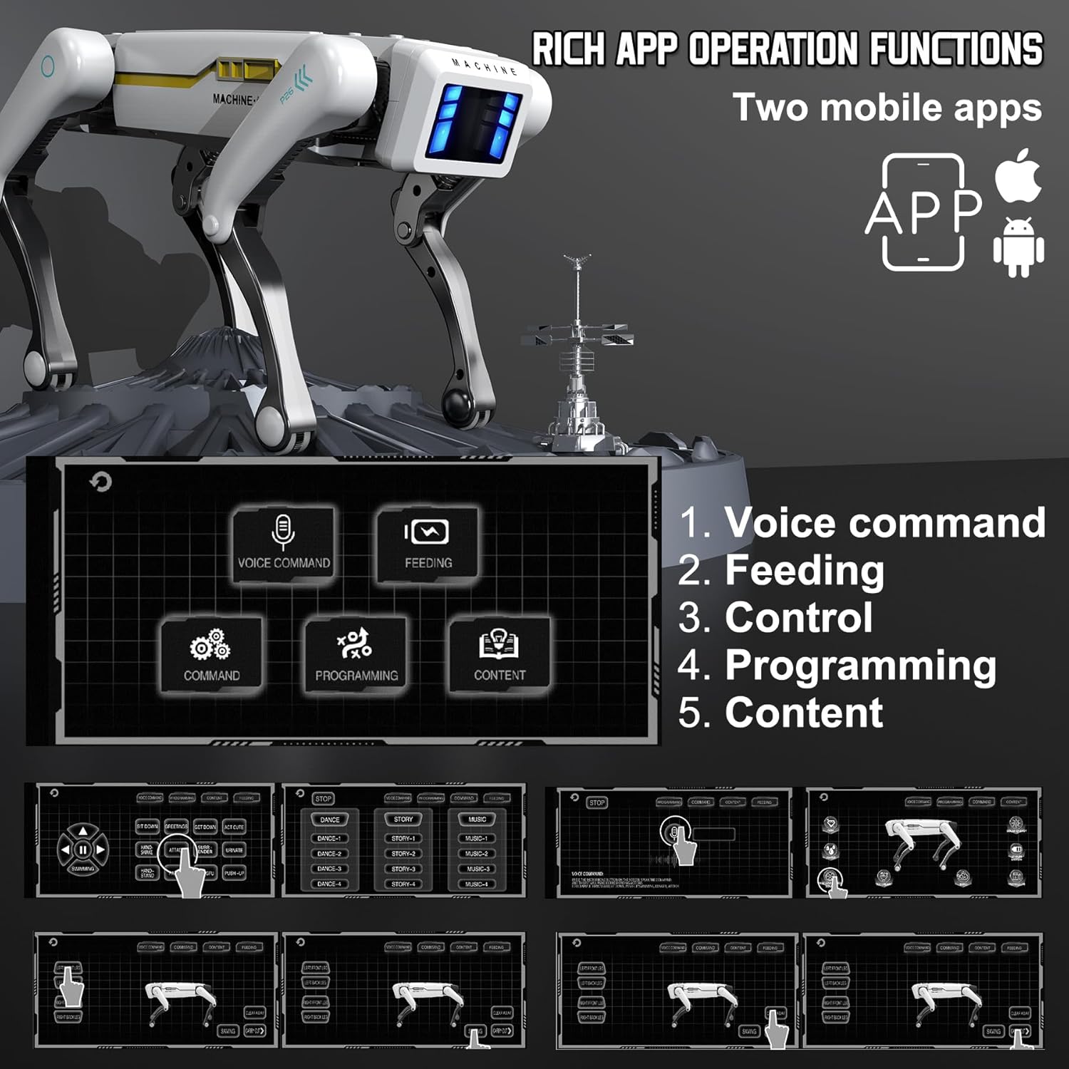 【Robot Dog with APP Control】In addition to the remote control, control the robot dog with simple voice commands via app. With supporting programming, not only makes it easy to customize the robot dog behavior and routines, but also is beneficial for kids’ interest to science and technology.